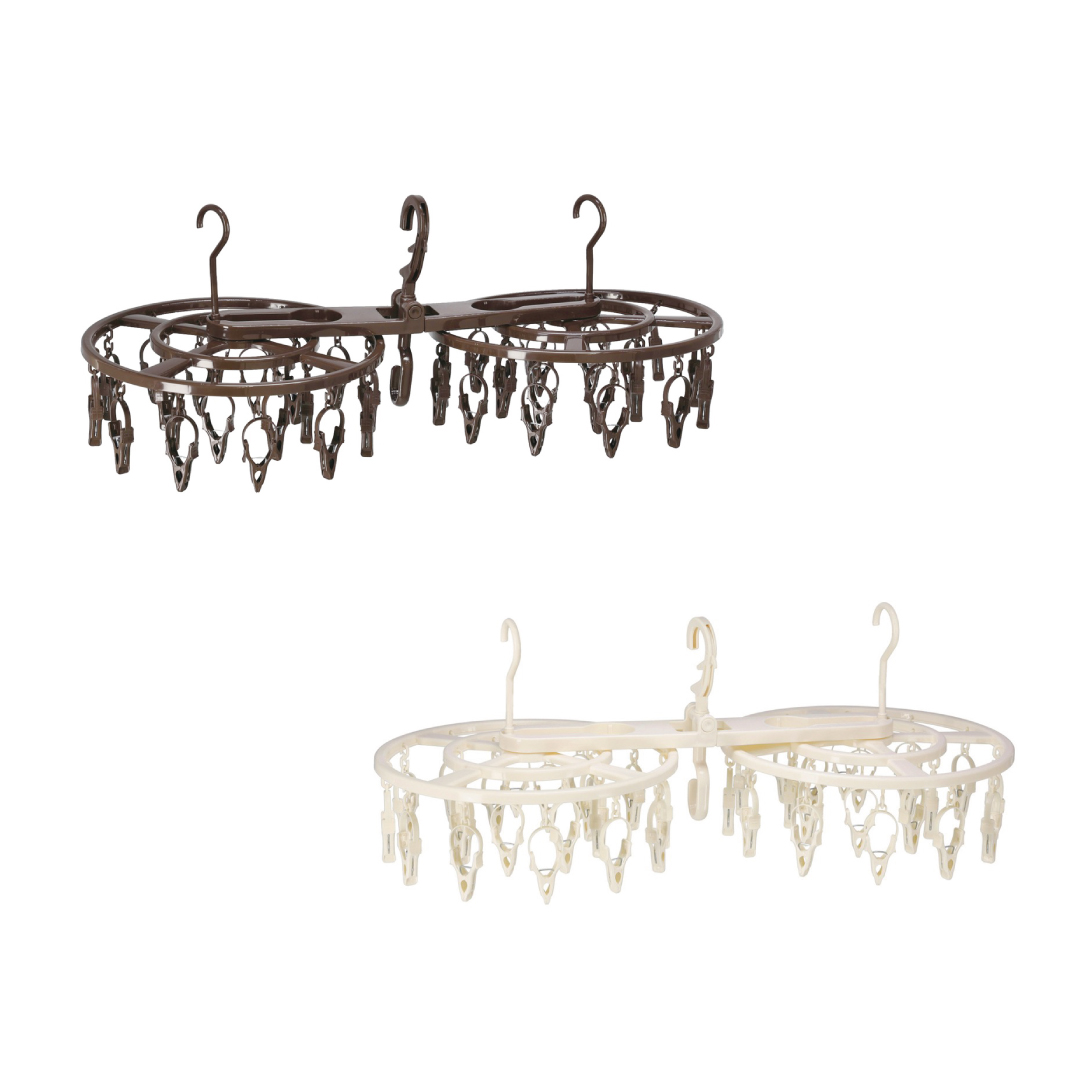 2つの回転するピンチハンガーを連結した形状。ハンガー本体が回るため、洗濯物を干す、取り込む動作がスムーズに。ピンチは左右に20個ずつ、合計40個付いています。荷重をバランスよく分散させてご使用いただくことで、全体でメ小物類に最適ですが、ジーンズなどの重たい物10kgまでの洗濯物に対応。 今まで場所を取ってなかなか干しずらかったシーツやバスタオルなどは回転ハンガーに巻きつけながら干すことでスペース縮小します